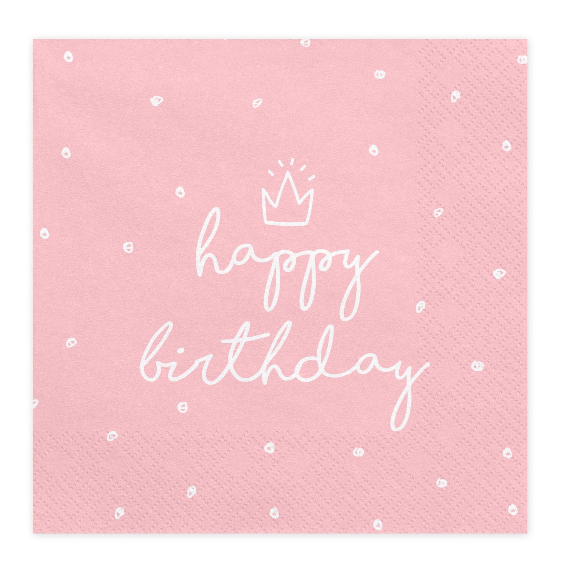 Servilletas toda de papel con las siglas Happy Birthday en letra caligráfica