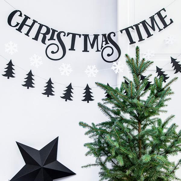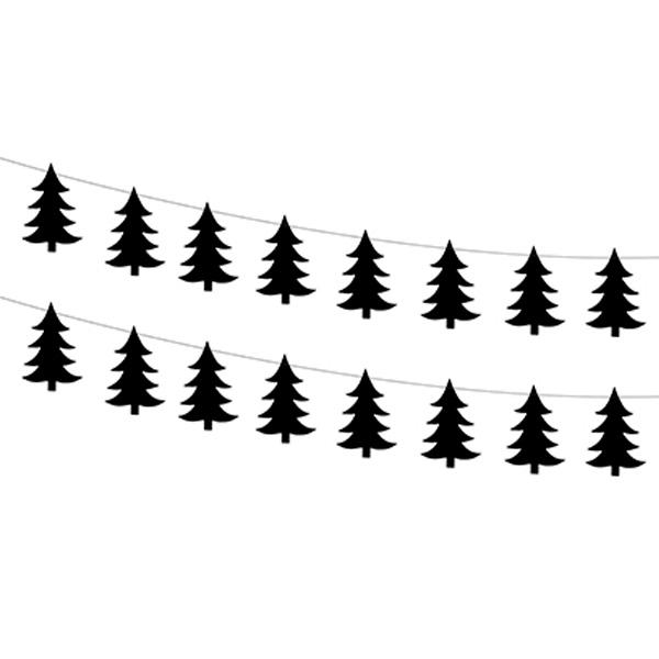 Recibirás un set con 2 guirnaldas de Abetos en cartulina negra cosidos.