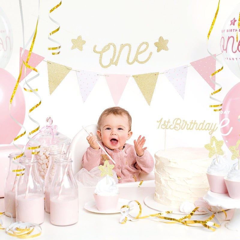 En este kit encontrarás todo lo que necesitas para decorar una pequeña fiesta familiar en casa para en primer cumpleaños de tu bebé.