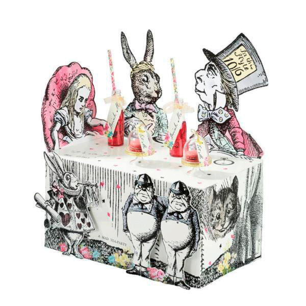Este stand central le dará el toque perfecto a tu mesa de temática Alicia. Conseguiras alturas en tu mesa de Buffet o de dulces y junto con todos los personajes de Alicia tendrás el rincón perfecto. Es de cartón de alta densidad, se arma de forma muy fácil y está repleto de detalles que alucinarás.