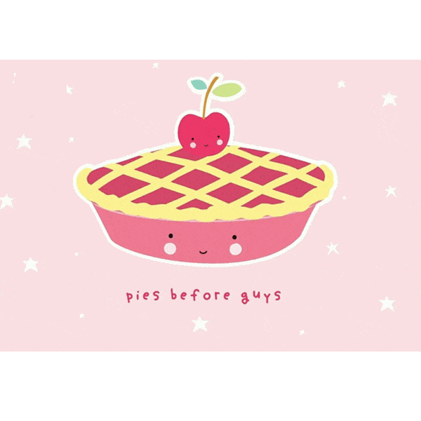 Tarjeta tipo postal con tarta sonriente y mensaje "pies before guys" de A Little Lovely Company.