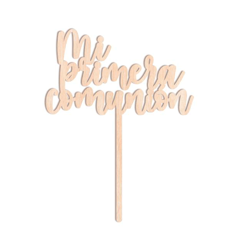 Con un bonito acabado en madera para que puedas usarlo con cualquier temática y con una gran texto de "Mi Primera Comunión" Quedará perfecto en tu pastel.
