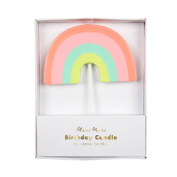 Con esta vela con forma de arcoiris en colores pastel y neon tu bizcocho quedará mucho más bonito!